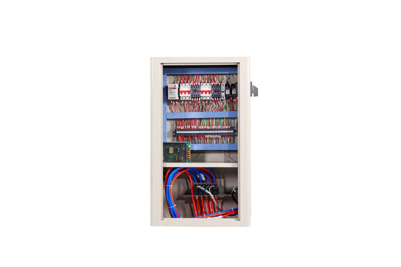 Hình ảnh: Tủ điện với hệ thống điện và van điện từ riêng biệt - Tủ điện được thiết kế với hệ thống dây điện và van điện từ riêng biệt. Bảo vệ hệ thống van điện từ và tránh tình trạng hư hỏng do nhiễm điện gây ra. Có chống đảo pha, 2 aptomta và bộ đổi nguồn 24V. Giúp máy hoạt động tốt và ổn định hơn.