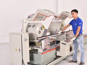 Có thể nói rằng máy cắt nhôm hai đầu là một thiết bị không thể thiếu trong sản xuất để cho một sản phẩm nhôm kính hoàn hảo với kích thước chuẩn xác, vết cắt gọn gàng.